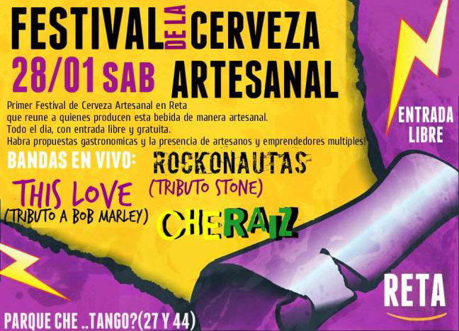 Hoy, sábado 28, Reta tendrá su primer Festival de la Cerveza Artesanal. En el parque de Che… Tango? se darán cita productores de la región, artesanos, emprendedores y músicos. Desde las 19, al aire libre, con entrada libre y gastronomía para todos los gustos.